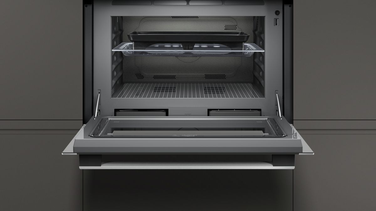 • Встраиваемая микроволновая печь с функци с функцией подогрева: Микроволны, Приготовление на пару 100%, Горячий воздух, Гриль с конвекцией, Большой гриль